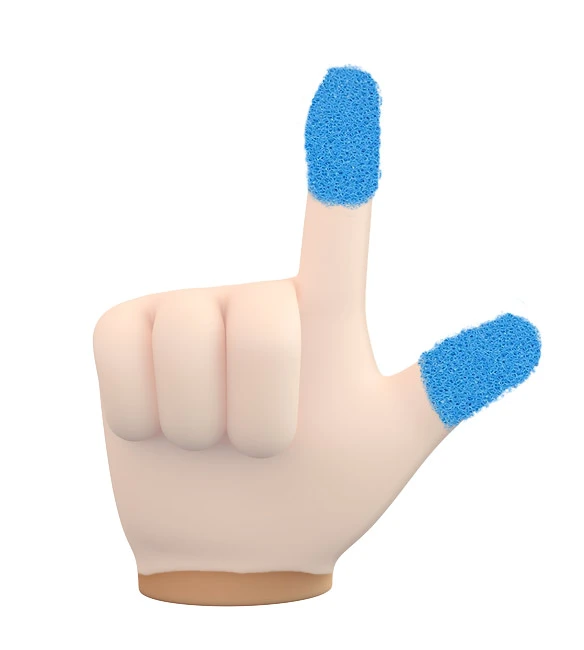 Il dispositivo è molto semplice: consiste infatti in un guanto di nitrile o di lattice monouso a cui vengono incollati due profili di spugna abrasiva posti sul polpastrello del pollice e dell’ indice.