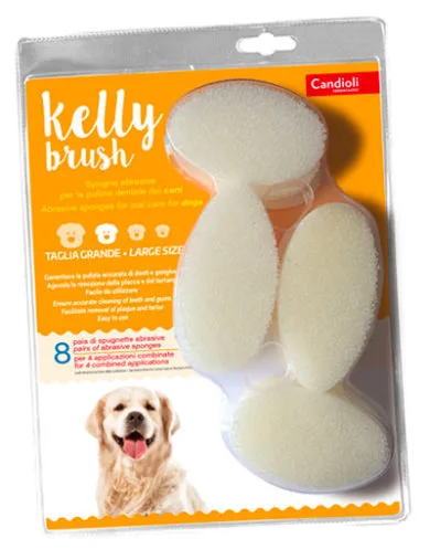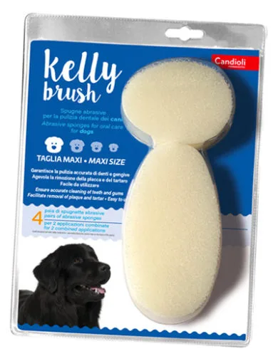Il sistema Kelly Brush è programmato per lo spazzolamento orale del cane e del gatto, ed è adattabile per forma alle varie razze aiutando a tenere più puliti e quindi più sani denti e gengive.