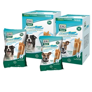 Joki Dent Star Bar è lo snack appetibile per contribuire ogni giorno alla buona igiene orale del proprio cane.