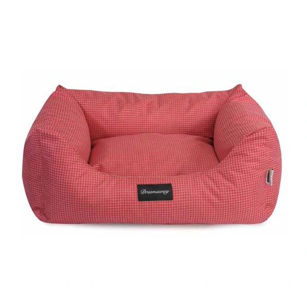 Comodissimo sofà con fantasia a quadri rossi