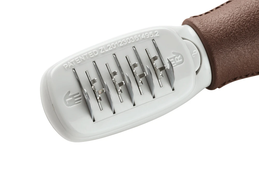 Slanatore per rimuovere il pelo morto esterno o per eliminare l’infeltrimento del sottopelo.