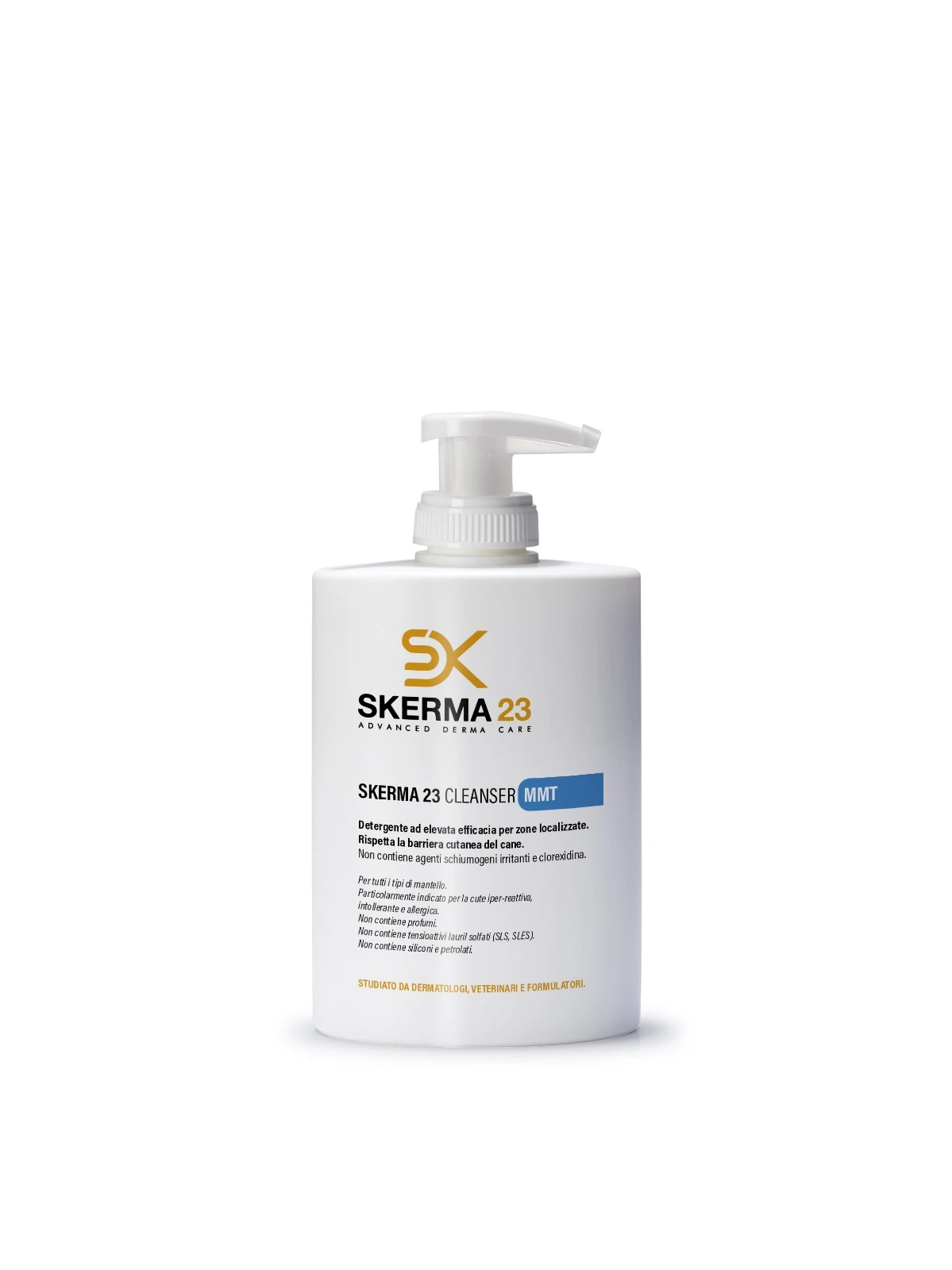 SKERMA 23 MMT è una linea di prodotti caratterizzata dall’esclusiva tecnologia macromicellare che, a differenza dei comuni detergenti, consente di ottenere un’efficace detersione senza danneggiare la barriera cutanea.