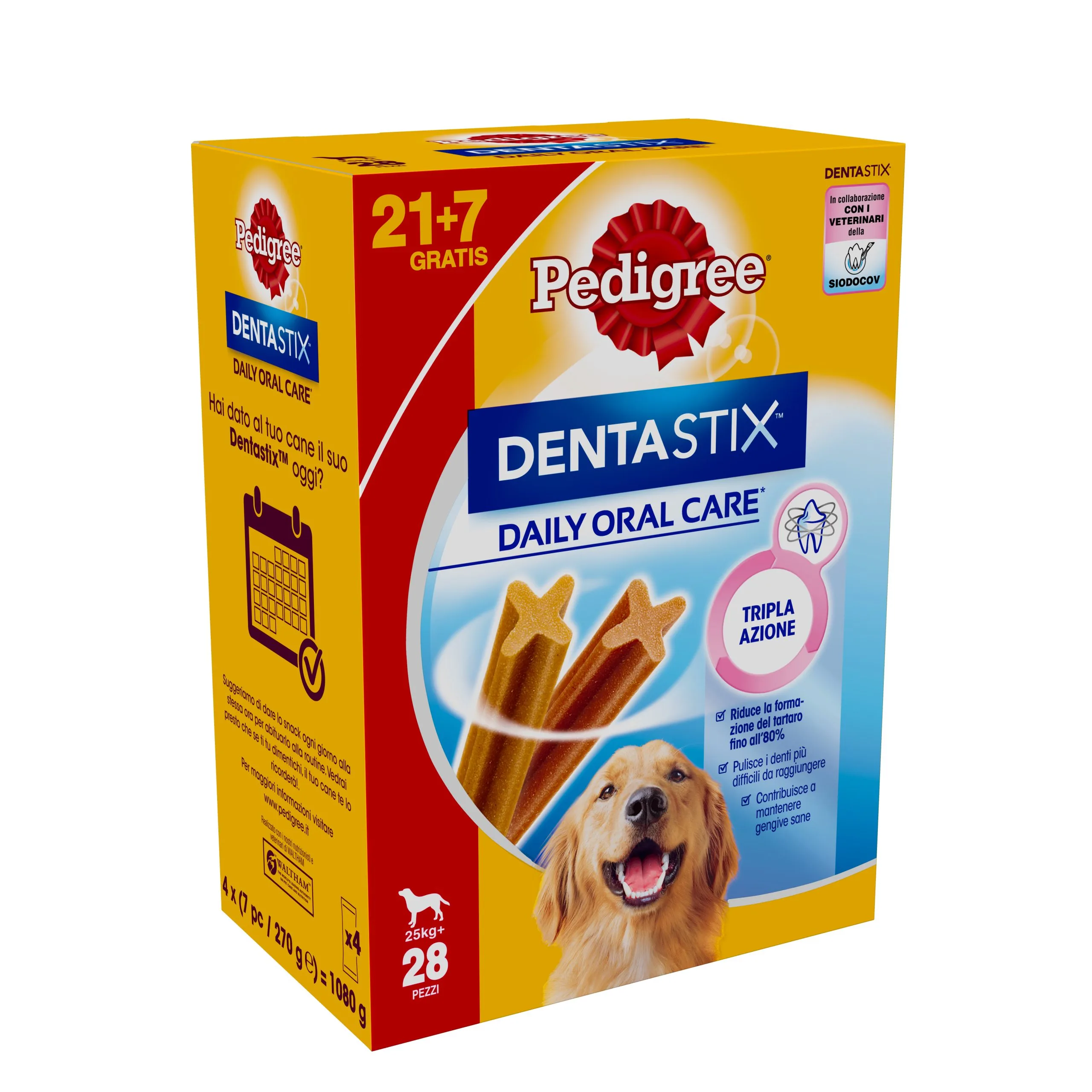 PEDIGREE DentaStix ha una forma unica X e, se somministrate quotidianamente, la combinazione della sua consistenza leggermente abrasivo e principi attivi, è scientificamente provato per aiutare a ridurre il tartaro fino al 80% . per di più, sono a basso contenuto di grassi e senza zucchero.