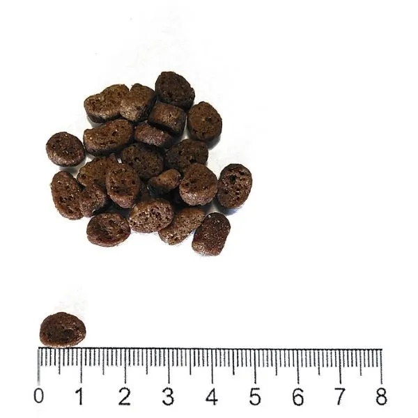 Proteina 33% , Tenore in materia grassa 16,5% , Fibre grezze 2,5% , Materia inorganica 7,1% , Omega 3 0,26% , Omega 6 1,76% , Calcio 0,9% , Fosforo 0,65% , Sodio 0,19% , Potassio 0,8% , Magnesio 0,09% .