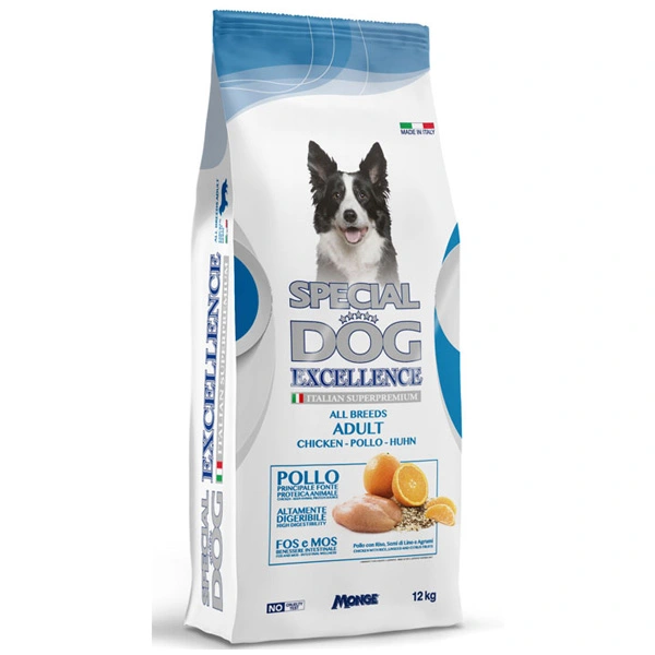 Pollo carne disidratata (28%), riso (18%), granturco, grasso animale (olio di pollo purificato al 99,5%), frumento, proteine animali idrolizzate, uova intere essiccate (2%), lievito di birra, semi di lino (1%), pastazzo di agrumi (1%), mannano-oligo-saccaridi (M.O.S. 1%), prodotti del lievito (F.O.S. fruttoligosaccaridi 0,75%), yucca schidigera, cloruro di sodio.
