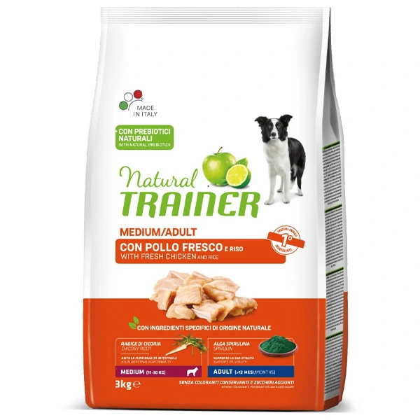 Pollo fresco 18% , proteine disidratate di pollo e tacchino 18% , granturco, riso 12% , fioretto di granturco, proteine animali idrolizzate, grasso di origine animale, semi di lino* 2,5% , polpa di barbabietola*, proteina di granturco, sostanze minerali, autolisato di lievito 0,75% , estratto secco di radice di cicoria (fonte di inulina)*, olio di granturco, lignocellulosa, mela disidratata in polvere* 0,15% , concentrato di limone in polvere* 0,1% , spirulina (Arthrospira platensis)* 0,1% , peptidi di collagene bioattivi 0,06% .