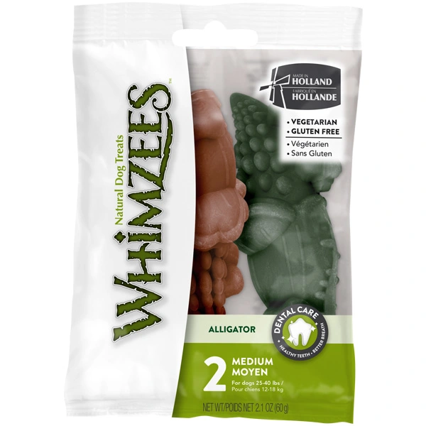 Whimzees è uno snack dentale unico nel suo genere che coniuga funzionalità e divertimento. Prodotto con Ingredienti Naturali senza cereali, senza OGM, con basse calorie e 100% vegetale.